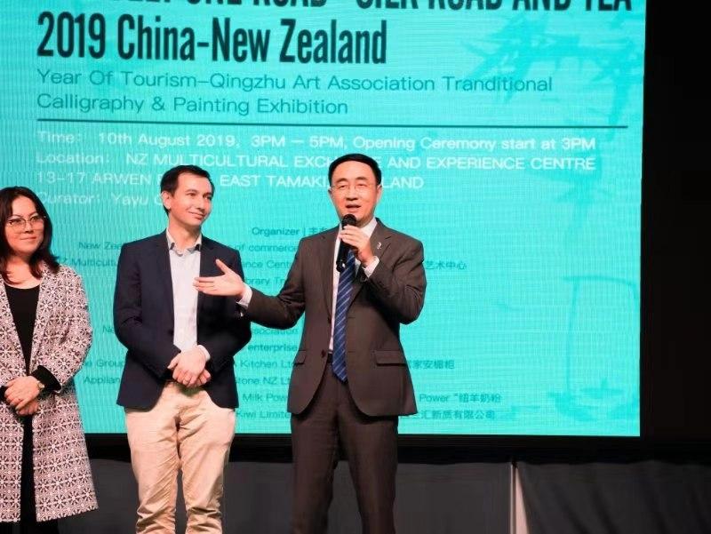 “一带一路”丝路传香——2019中新旅游年暨厦门青竹社书画展开幕式于 2019 年 8 月 10日下午3点在新西兰奥克兰市新西兰中华传统文化体验艺术中心举行。本次活动由新西兰厦门商会和新西兰厦门联谊会联合主办,中国驻奥克兰副总领事萧业文,中国驻奥克兰文化领事周立,国家党议员、国会政府治理和行政委员会主席杨健博士、国家党议员、前国防部长Hon Mark、国家党议员 Mitchell 、BAKSHI,KANWALJIT SINGH、Simeon Brown、Melissa Lee,奥克兰市议员Paul Young,新西兰厦门商会会长孙成帆、新西兰厦门联谊会会长钟飘及新西兰中国团体联合会郭宏会长等侨界领袖,华人艺术界,媒体,中国艺术家代表团,新西兰艺术界人士及厦门华祥苑董事陈青莉等众多领导、媒体记者、当地知名人士纷纷到场见证,并欣赏了由华祥苑中国茶师萧曼灵等展示的茶道,共同感受了来自东方神奇树叶带给他们的绝妙感官体验。